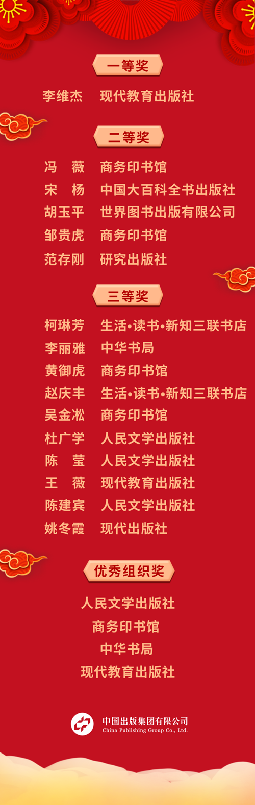 为深入学习贯彻习近平新时代中国特色社会主义思想,贯彻落实党的二十大精神和习近平总书记关于新时代人才工作的新理念新战略新举措,着力加强集团新时代编辑人才队伍建设,尤其是能力建设,切实提高编辑思想水平和业务能力水平,集团组织了第三届编辑技能大赛,旨在通过以赛促学、以赛促训,激发编辑立足本职、刻苦钻研的工作热情,推动出版工作在新时代实现更高水平发展。本次大赛由20家单位推荐的近180名编辑参加了现场闭卷考试,共评选出一等奖1名,二等奖5名,三等奖10名,优秀组织奖4家。现将获奖名单公布如下。
