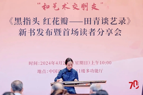 4月21日,由人民音乐出版社主办的“‘和艺术交朋友’——《黑指头 红花瓣——田青谈艺录》新书发布暨首场读者分享会”在京成功举行。本次新书发布暨首场读者分享会也是人民音乐出版社成立70周年系列活动——首届读者开放日的第一场重要活动。中国出版传媒股份有限公司董事、副总经理于殿利出席并致辞,中国艺术研究院、国务院参事室文史业务司、北京大学、中国文联音乐艺术中心、中央文史研究馆、文化艺术出版社等单位相关领导、专家,多位文化艺术界嘉宾、表演嘉宾和媒体嘉宾参加本次活动。