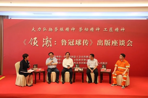 在活动现场,中国大百科全书出版社向劳模代表、职工书屋、北京市总工会、延安市总工会等赠书。著名主持人敬一丹受邀担任座谈会主持人。在三轮对谈环节,图书主创团队本书作者陈冠柏,著名策划人朱海,全国著名劳模包起帆、高凤林以及开国劳模马恒昌的孙子马兵,中国作家协会原副主席高洪波,中国作家协会主席团委员、中国报告文学学会常务副会长梁鸿鹰等分别展开对谈,分享了阅读体会。嘉宾们表示,这本厚重的书,写出了鲁冠球从农民走向世界的风采,充满正能量。