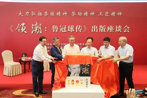 2024年6月29日上午,由中国职工文化体育协会主办、中国大百科全书出版社承办的“大力弘扬劳模精神、劳动精神、工匠精神——《领潮:鲁冠球传》出版座谈会”在中华全国总工会职工之家举办。中华全国总工会副主席、书记处书记、党组成员魏地春,中国职工文化体育协会会长李守镇,中国出版集团有限公司副总经理、党组成员陈永刚,中华全国总工会原副主席(兼)许振超,中国大百科全书出版社党委书记、社长刘祚臣,万向集团董事长鲁伟鼎,全国著名劳模包起帆、高凤林等劳模代表,以及劳模后人代表,还有来自中华全国总工会、中国作协相关部门负责人参加活动。