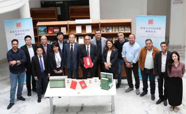 黄志坚董事长一行还与突尼斯出版机构、图书馆、高校等进行座谈交流会,增进了解、加深合作,推介集团重点图书、北京国际书展及书报刊进出口业务,并向突尼斯迦太基大学高等语言学院赠书,在苏赛大学参加中国书架揭幕。